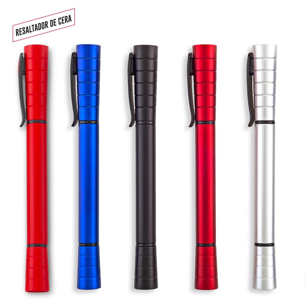 Bolígrafo plástico con resaltador de cera y mina normal. No se seca. Medidas: 14.2 cm Marca: 4.5 cm Tampografía Venta mínima y en múltiplos de caja de 50 unidades por color.    Ficha Técnica