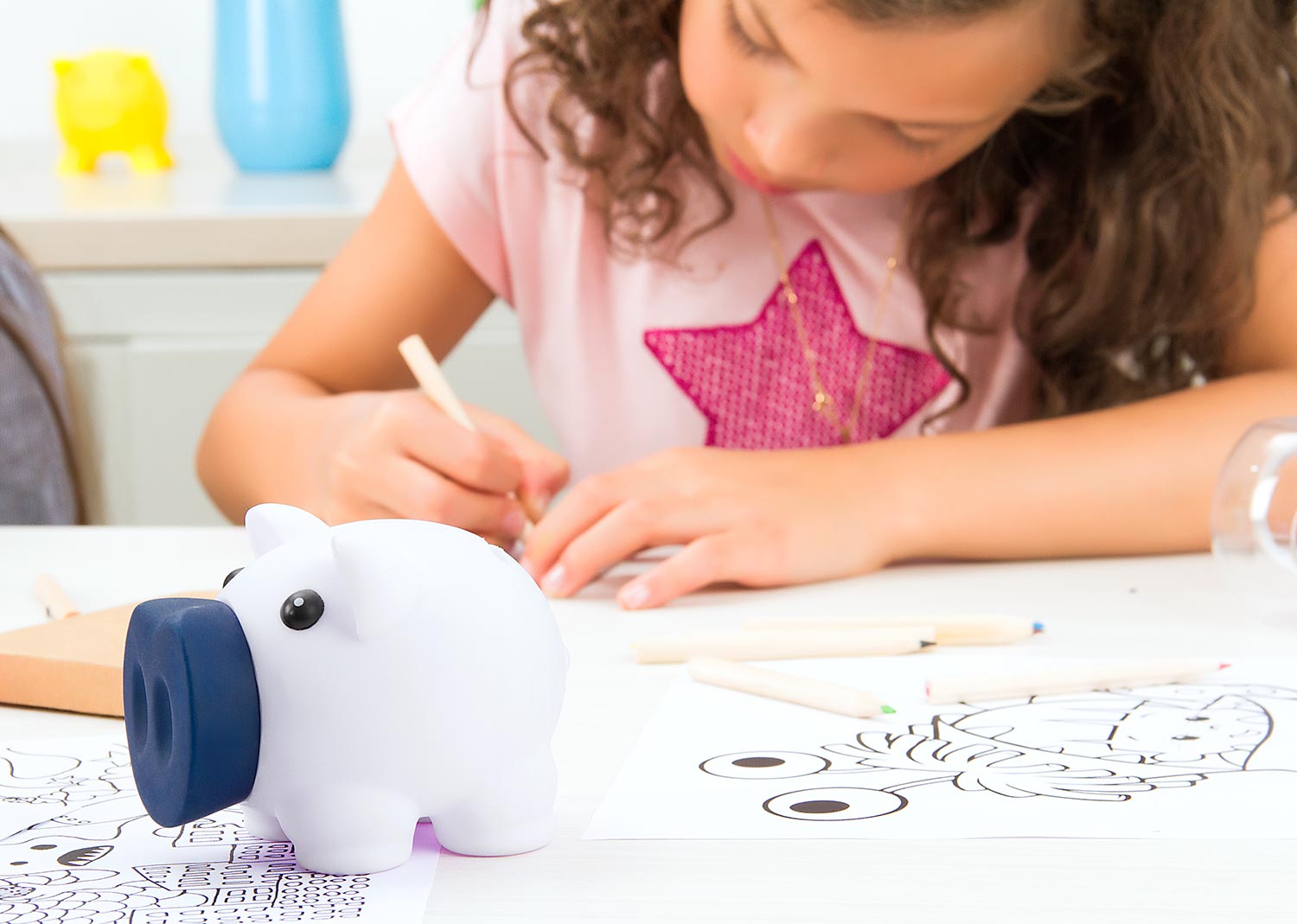 Alcancía en forma de cerdito. La naríz funciona como tapón para vaciar la alcancía. Combinación de colores con blanco.. Area impresion: 3,2 x 2 cm. . Medidas Largo: 10.00 . Medidas Ancho: 8.00 . Medidas Alto: 7.50