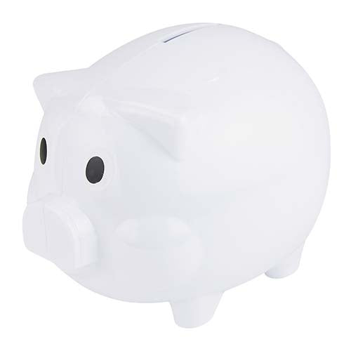 Alcancía en forma de puerquito.. Medidas: 9.7 x 9.7 cm . Material: Plástico
