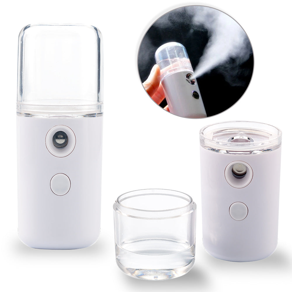 Vaporizador automatico de liquidos de 20ml de capacidad, atomiza de forma constante el liquido que coloca dentro durante 5 minutos aproximadamente 3-4ml por minuto. Bateria recargable incorporada de 3.7V180mAh. Tiempo de carga 1.5h aprox. Solo funciona con liquidos. Dos opciones de Uso: 1. Atomizador de agua mineral para hidratar la piel 2. Dispensador de liquido Antibacterial o desinfectante liquido no corrosivos Medidas: 10 cm x 4 cm x 3 cm Marca: 2.2 cm Tampografia, producto con tratamiento Ver Video