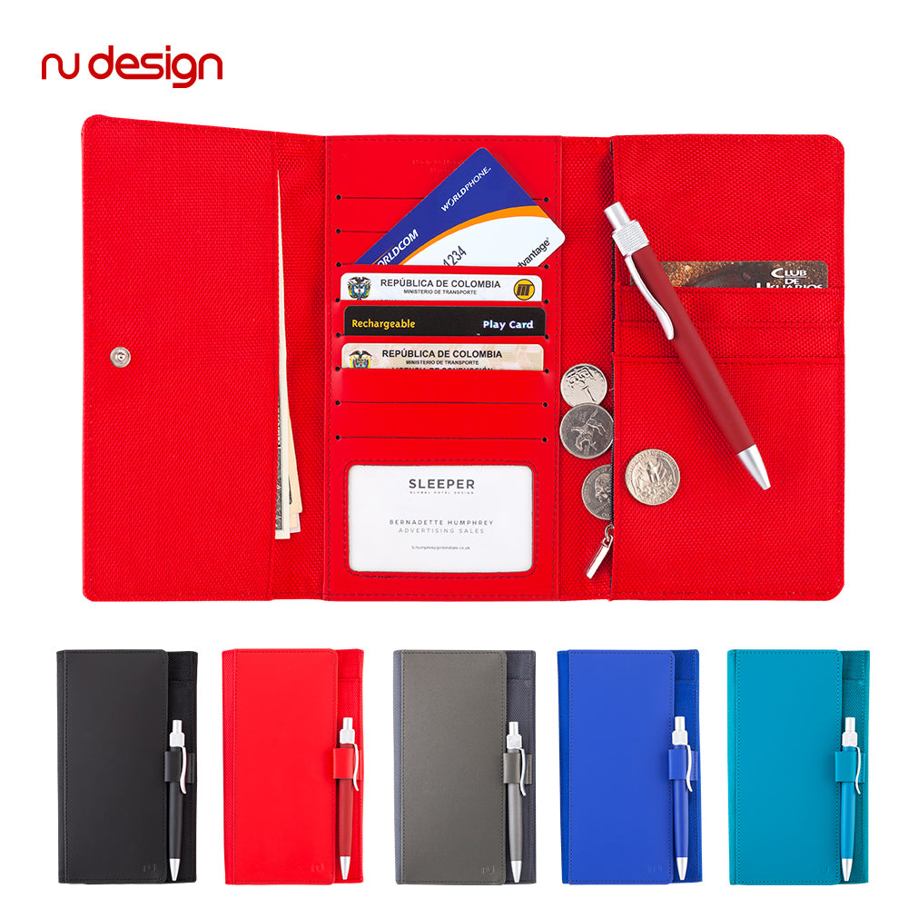 En cuero recuperado Europeo y lona, con compartimentos internos, monedero en lona con cierre en cremallera, y bolsillos para tarjetas y boligrafo. Empaque en bolsa. Medidas Cerrado: 20 cm x 11 cm Marca: 5.5 cm  Laser Tampografia