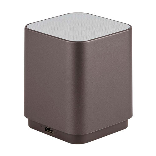 Bocina bluetooth con batería recargable. Reproducción de música de 1.5 hrs aproximadamente. Cable cargador USB incluido. Logotipo se ilumina al grabar.. Medidas: 6 x 7.2 cm . Material: Plástico