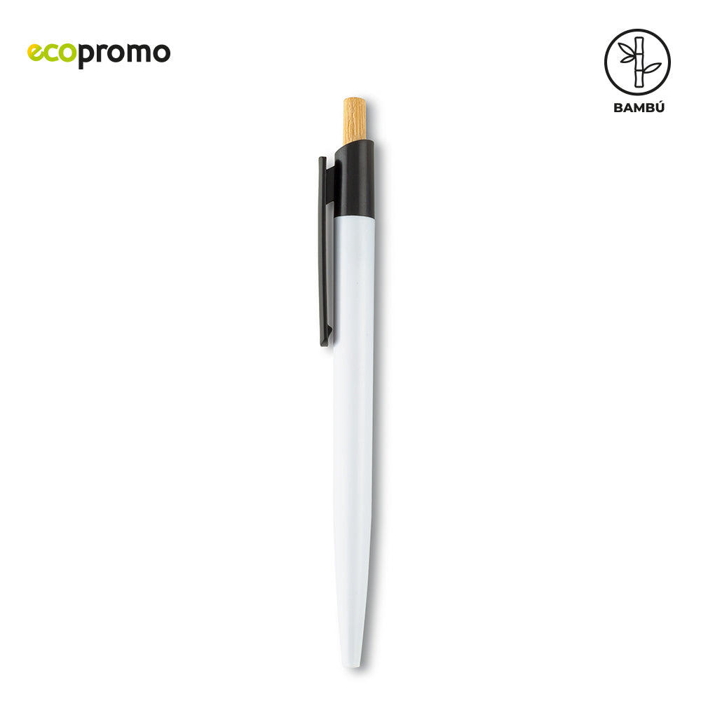 Bolígrafo plástico con mecanismo push y partes en bambú. Medidas: 14 cm. Marca: 3.5 cm Tampografía. Venta mínima y en múltiplos de caja de 50 unidades por color. Ficha Técnica