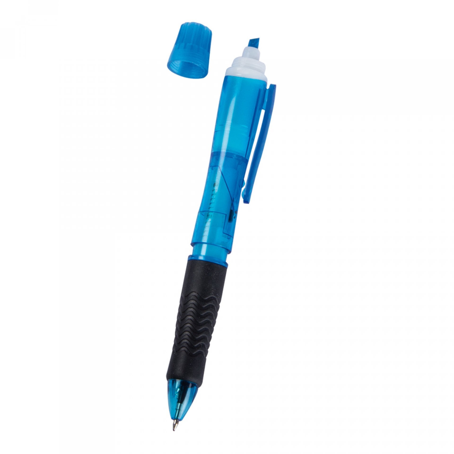 4 funciones en uno: doble mina de color rojo y negro, resaltador y portaminas ---------------------------- Impresión: Tampografía  Tamaño Área Impresa: 5 x 0.6 cm. --------------------------------------- Caja: 63x31x28 cm. 1.000 unidades 15 KG