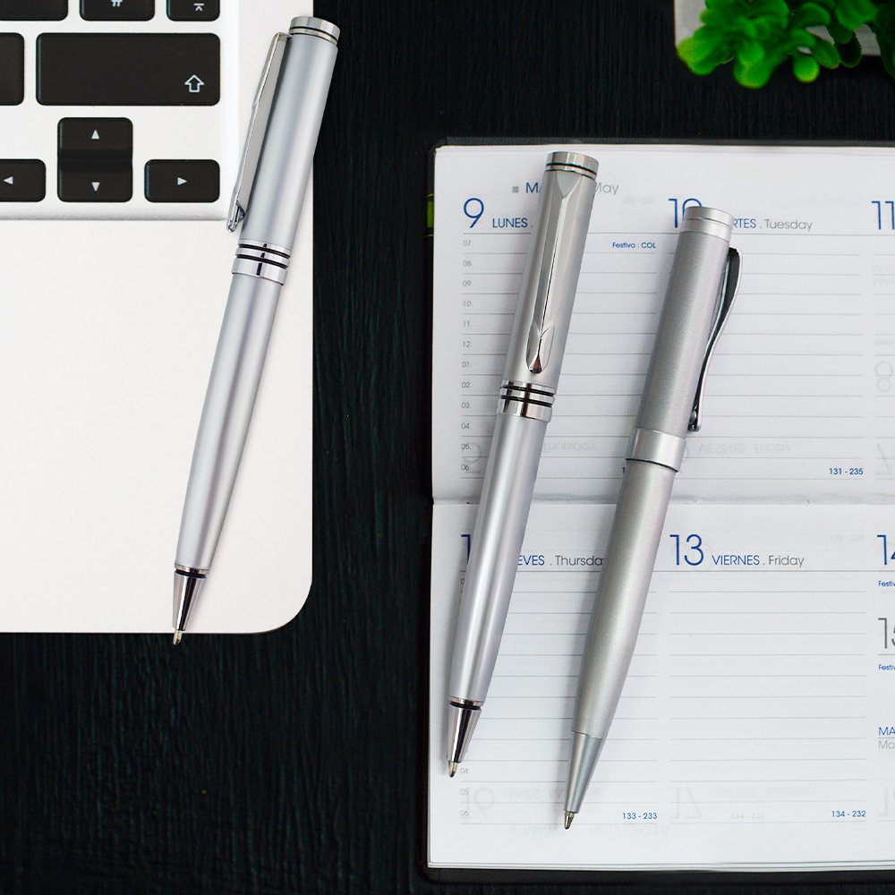 Metálico con sistema giratorio. ---------------------------------------- Impresión: Tampografía Metálica - Grabado Láser Tamaño Área Impresa: 5 x 0.6 cm. -------------------------------------- Caja: 50 X 32 X 18 1000 unidades  22 KG