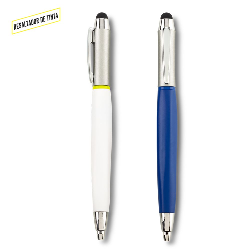 Bolígrafo plástico con stylus y resaltador de tinta. Medidas: 14.5 cm Marca: 3.5 cm Tampografía Venta mínima y en múltiplos de caja de 50 unidades por color.   Ficha Técnica