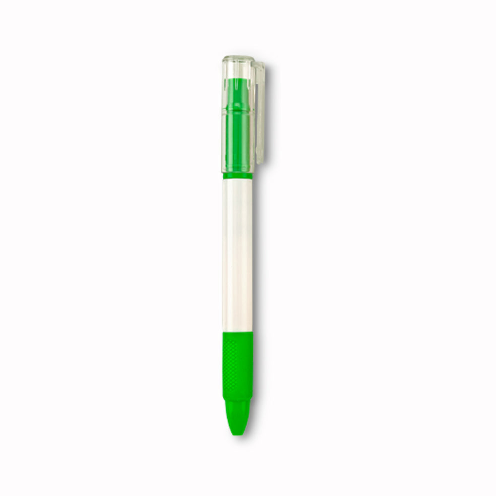 Bolígrafo plástico con resaltador de tinta. Mecanismo twist. Medidas: 14.3 cm. Marca: 4.5 cm Tampografía. Venta mínima y en múltiplos de caja de 50 unidades.  Ficha Técnica