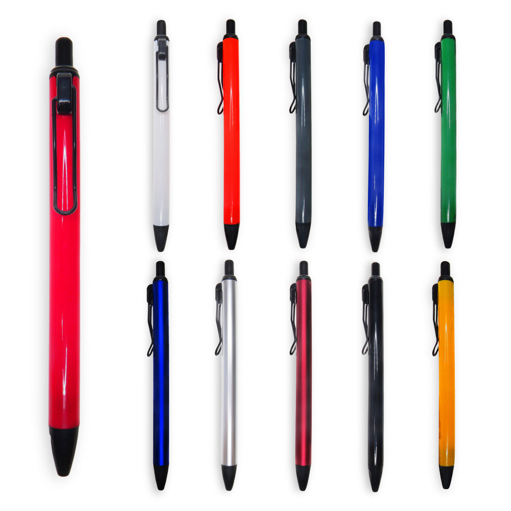 Bolígrafo plástico. Mecanismo push. Clip metálico. Medidas: 14.5 cm. Marca: 4 cm Tampografía Venta mínima y en múltiplos de caja de 50 unidades por color.   Ficha Técnica