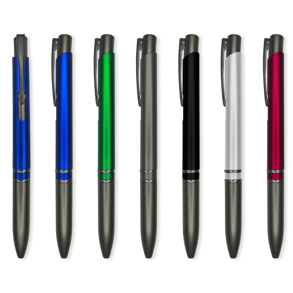 Bolígrafo plástico. Mecanismo push. Clip metálico. Medidas: 13.5 cm. Marca: 4 cm. Tampografía Venta mínima y en múltiplos de caja de 50 unidades por color.   Ficha Técnica Ver: EST-C-BOX EST-CARTON EST-CLEAR EST-ARISTO EST-AVALON EST-TUB