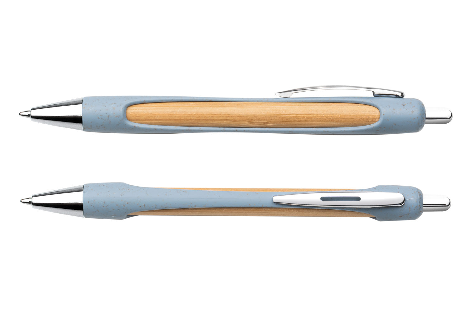 Bolígrafo ecológico elaborado en bambú con cubierta de paja de trigo. Su clip y punta metálicos brindan un toque elegante al diseño. Sistema retráctil. BolígrafoEsfero. Area impresion: Tampo: 6 cm x 0,7 cm. Láser:4cm X 0,7 cm . Medidas Largo: 14.3