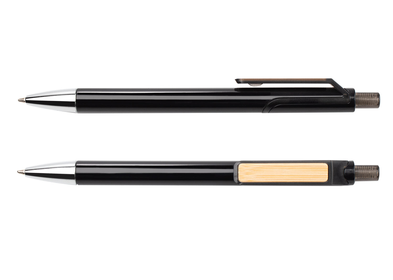 Bolígrafo de plástico con sistema retráctil y clip de bambú que puede ser usado como espacio de marca. BolígrafoEsfero. Area impresion: Tampo Cuerpo: 6 cm x 0,7 cm. Tampo clip: 3 cm x 0,5 cm. Láser Clip: 3 cm X 0,5 cm . Medidas Largo: 14.1