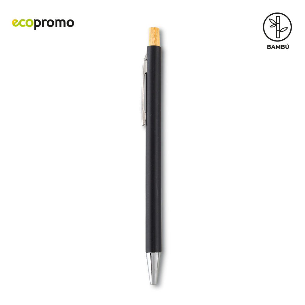 Bolígrafo plástico con mecanismo push y partes en bambú. Medidas: 14 cm. Marca: 3.5 cm Tampografía. Venta mínima y en múltiplos de caja de 50 unidades por color. Ficha Técnica