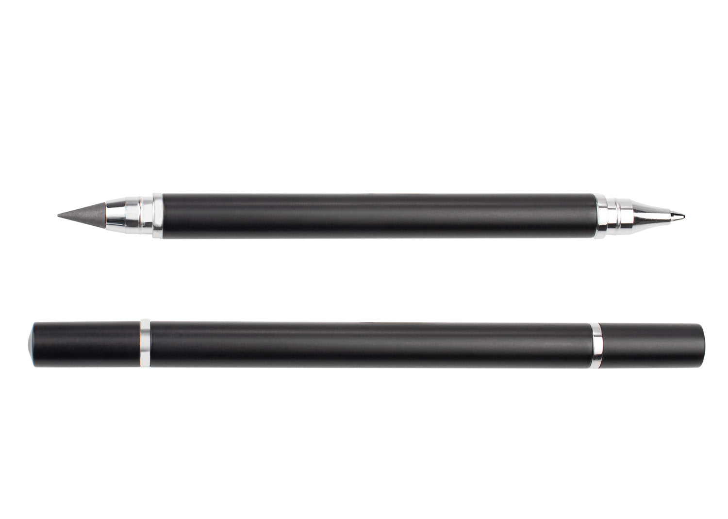 2 en 1. Bolígrafo y lápiz eterno con cuerpo de color metálico y detalles cromados. BolígrafoEsfero. Area impresion: Tampo: (7 X 0,6). . Medidas Alto: 14