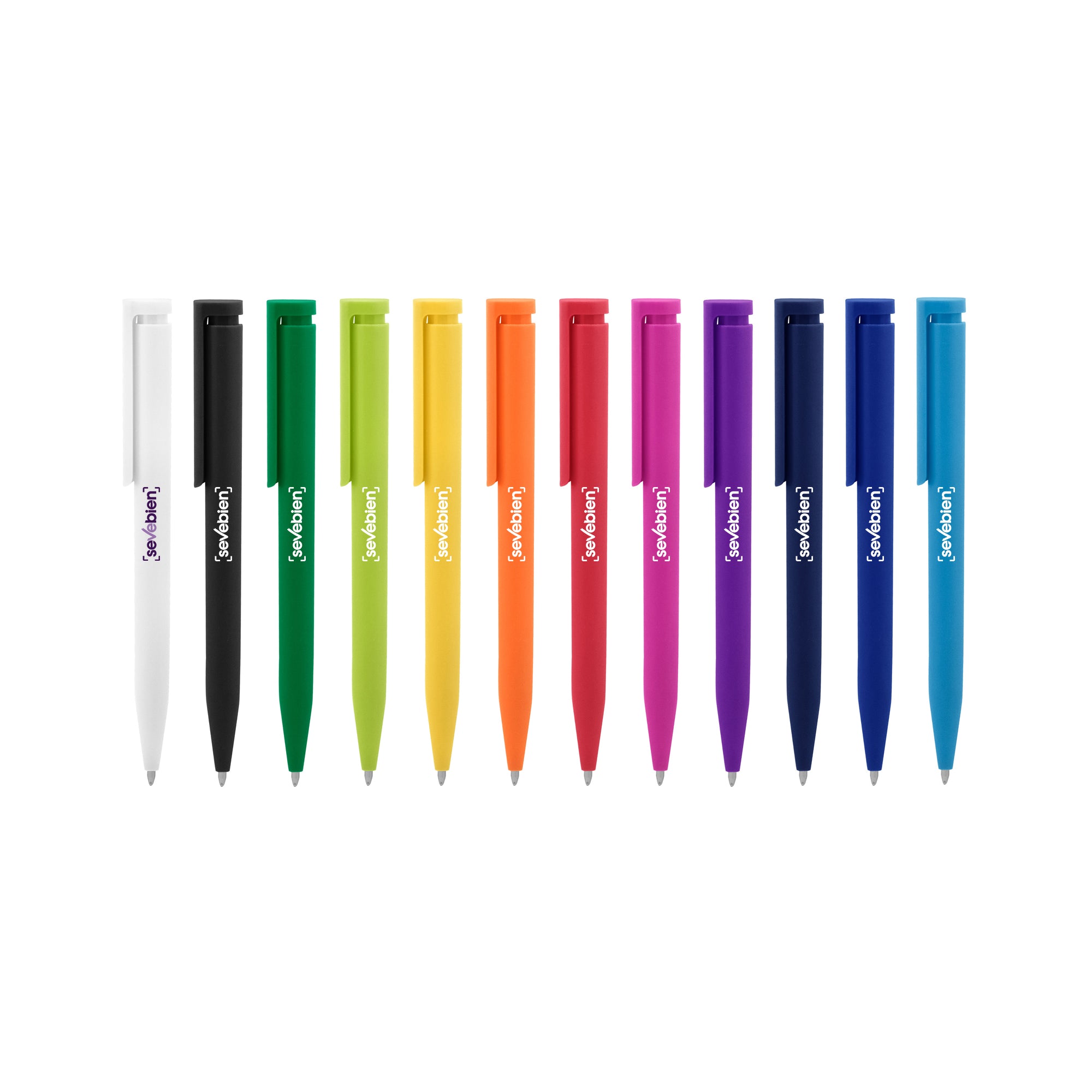 Plástico. Cuerpo de diferentes colores. Bolígrafo retráctil. Clip plástico del mismo color del cuerpo. Tinta negra. Sistema de botón push para destapar. Amplia área de impresión.  . Medidas Ancho: 21.0 . Medidas Alto: 21.0 . Medidas Profundidad: 51.0