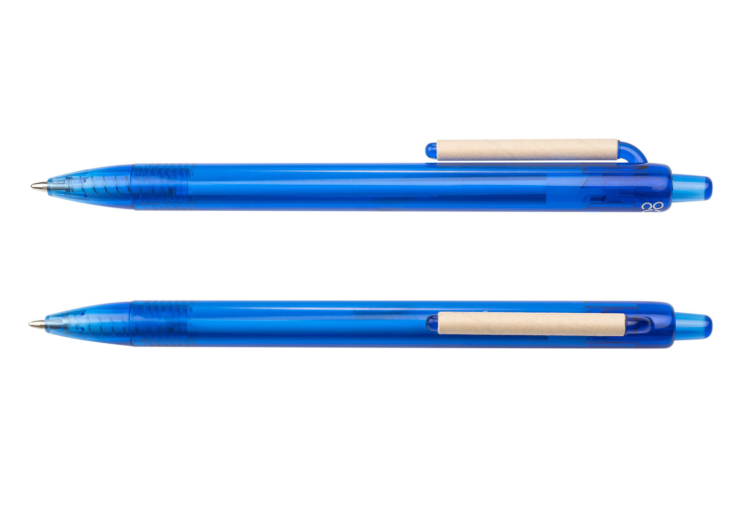 Bolígrafo elaborado en plástico PP recuperado del océano, con clip en cartón reciclado y sistema retráctil. BolígrafoEsfero. Area impresion: Tampo: 6 cm x 0,7 cm . Medidas Largo: 14.2
