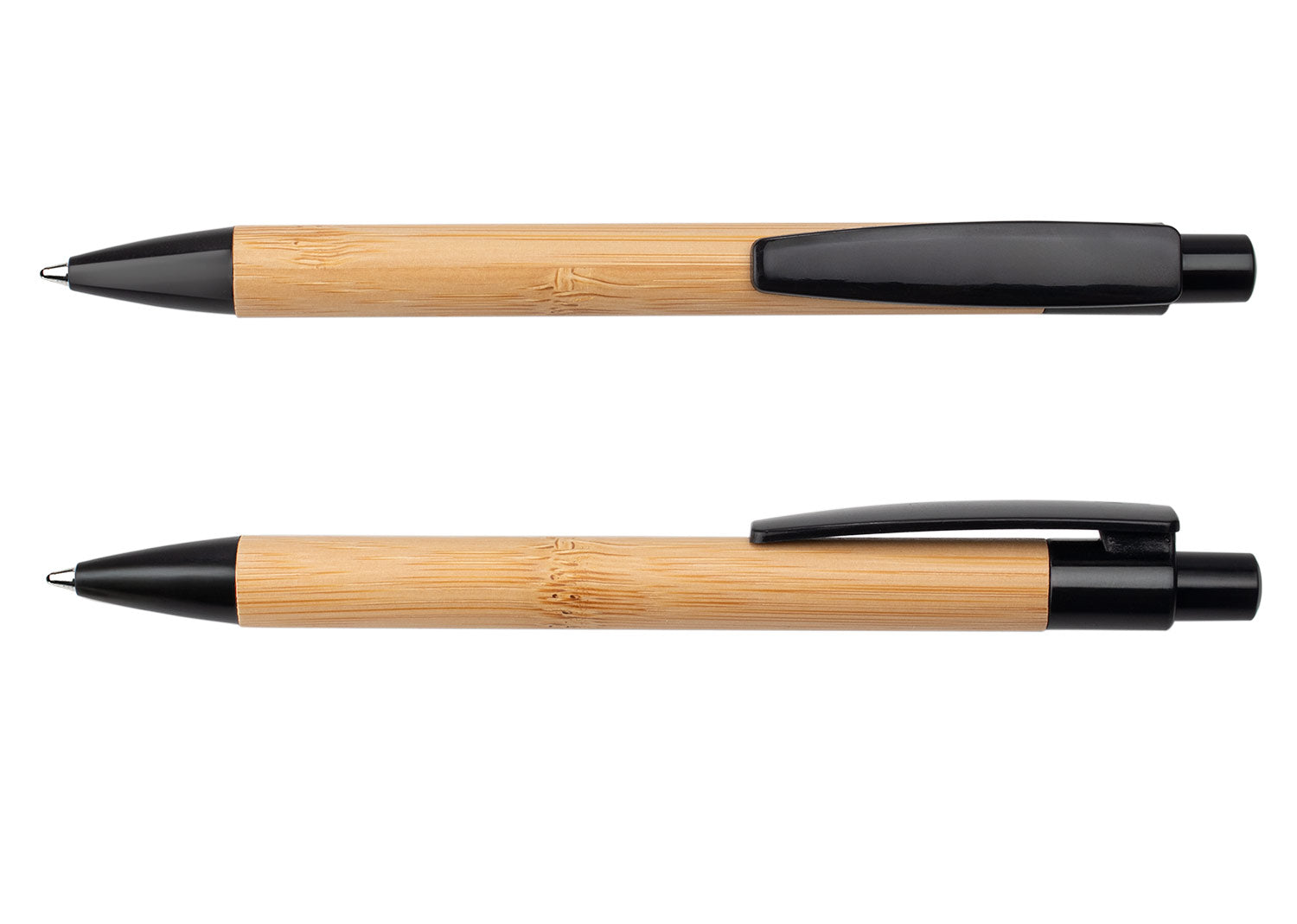 Bolígrafo retráctil con barril de bambú y detalles en paja de trigo de color en el clip, botón y punta, elaborado con materiales reciclados para un diseño sostenible y moderno. Ideal para quienes buscan funcionalidad y compromiso con el medio ambiente, disponible en atractivos tonos que aportan un toque natural y elegante.. Area impresion: Tampo: (6 X 0,7). . Medidas Ancho: 1.3 . Medidas Alto: 14.1