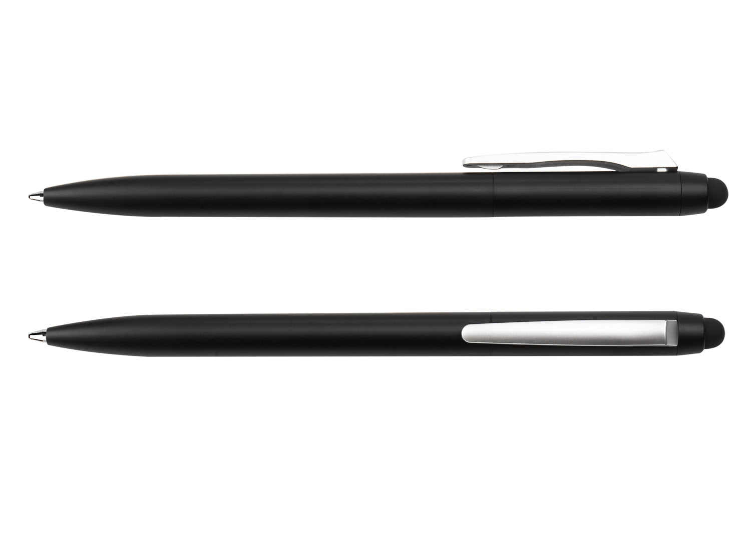 Bolígrafo plástico con sistema retráctil. Clip metálico y puntera touch para dIspositivos con pantallas táctiles. BolígrafoEsfero. Area impresion: Tampo: 6 cm x 0,7 cm . Medidas Largo: 14.9