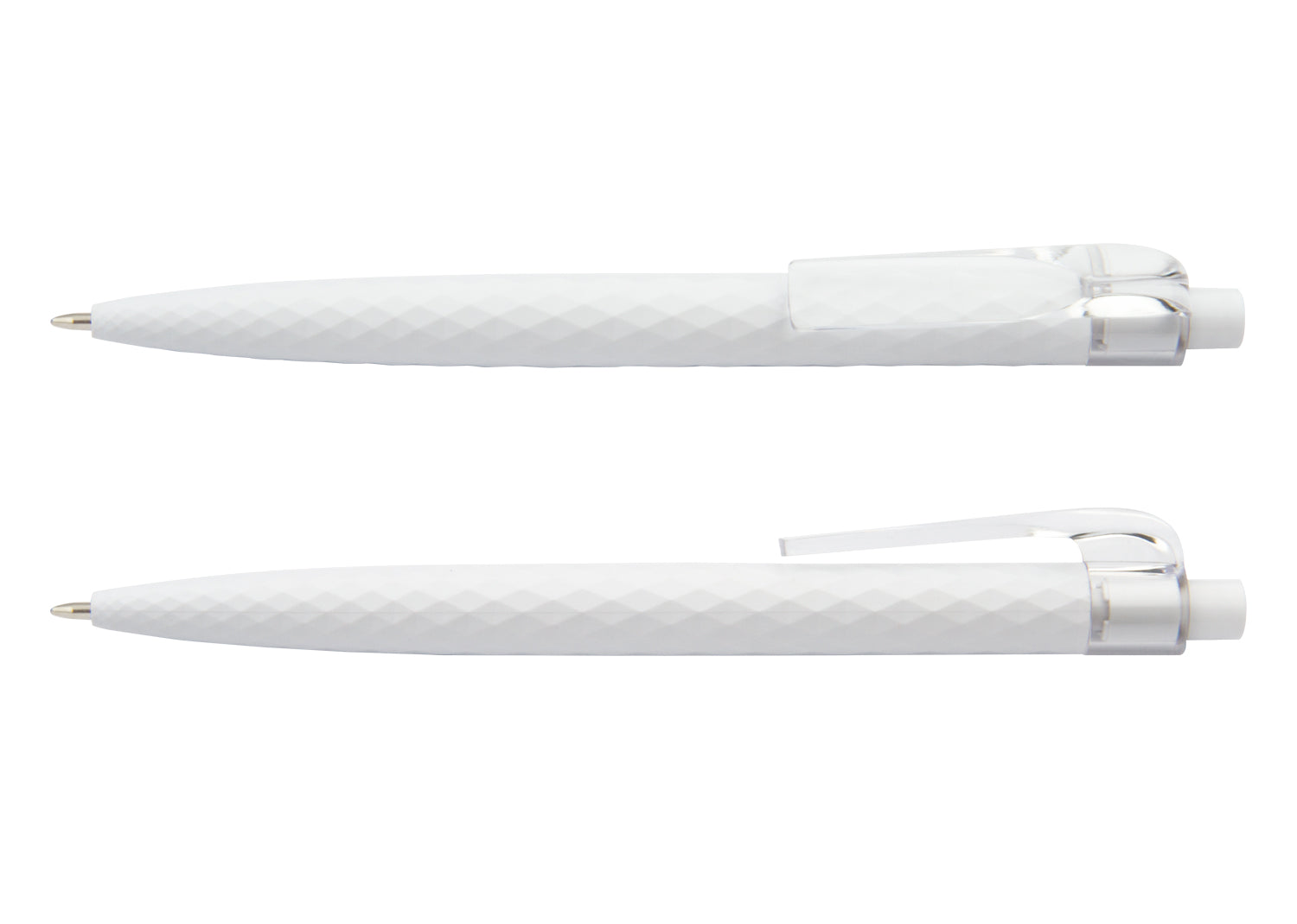 Bolígrafo plástico con diseño geométrico en 3D, con clip transparente y sistema de apertura retráctil. BolígrafoEsfero. Area impresion: 4 x 0,6 cm. . Medidas Largo: 1.00 . Medidas Ancho: 1.00 . Medidas Alto: 13.80