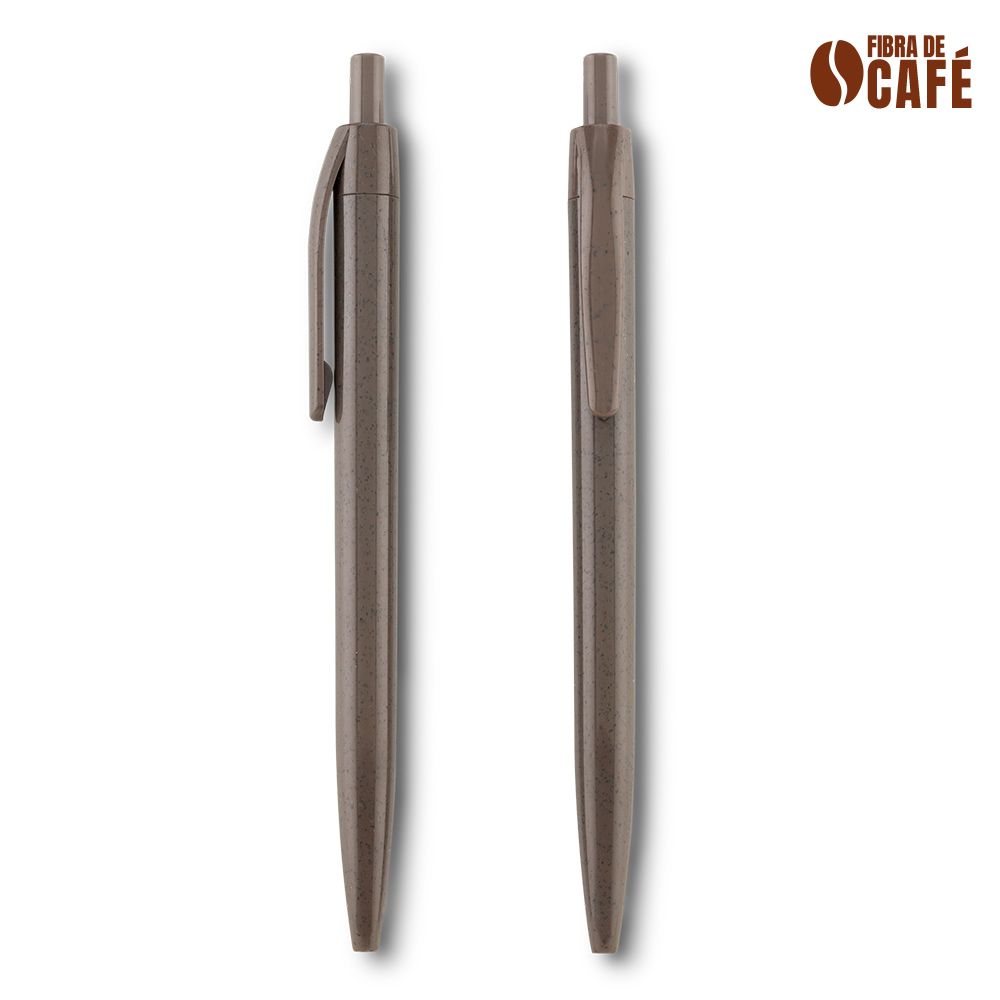 Bolígrafo plástico elaborado con fibra de café 50 fibra de café. El porcentaje de material ecológico tiene un promedio de biodegradabilidad de 2-3 años después del fin de su vida útil. Mecanismo push. Medidas: 14 cm Marca: 4 cm Tampografía Venta mínima y en múltiplos de caja de 50 unidades.