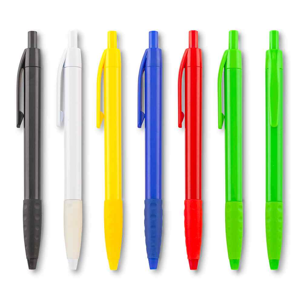 Bolígrafo plástico con mecanismo push. Medidas: 14 cm. Marca: 4 cm Tampografía. Venta mínima y en múltiplos de caja de 50 unidades por color. Ficha Técnica