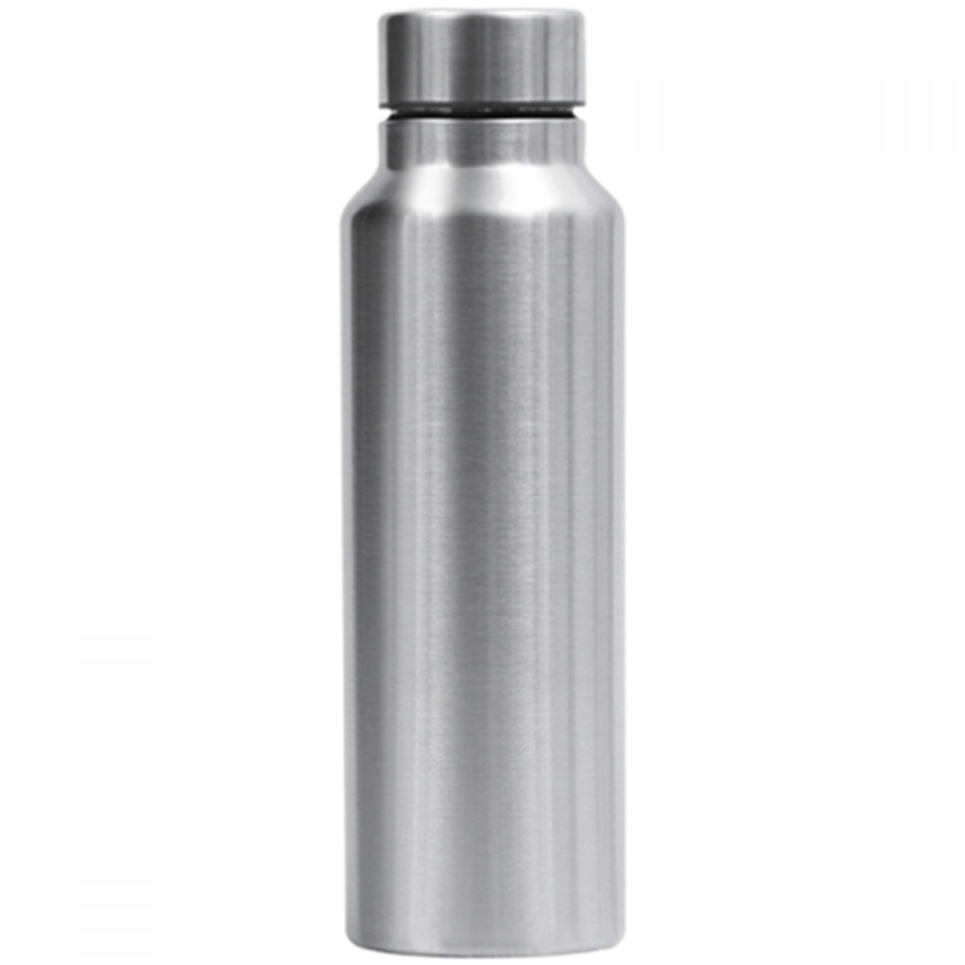 Botella en acero inoxidable con tapa removible. Para bebidas frías. De 750 ml. De 20.5 x 7.1 cm diámetro. -------------------------------------------------- Impresión: Tampografía metálica - Grabado láser Tamaño Área Impresa: 8 x 3 cm -------------------------------------------------- Caja: 78x48x28 cm. 60 unidades 13.3 Kilos
