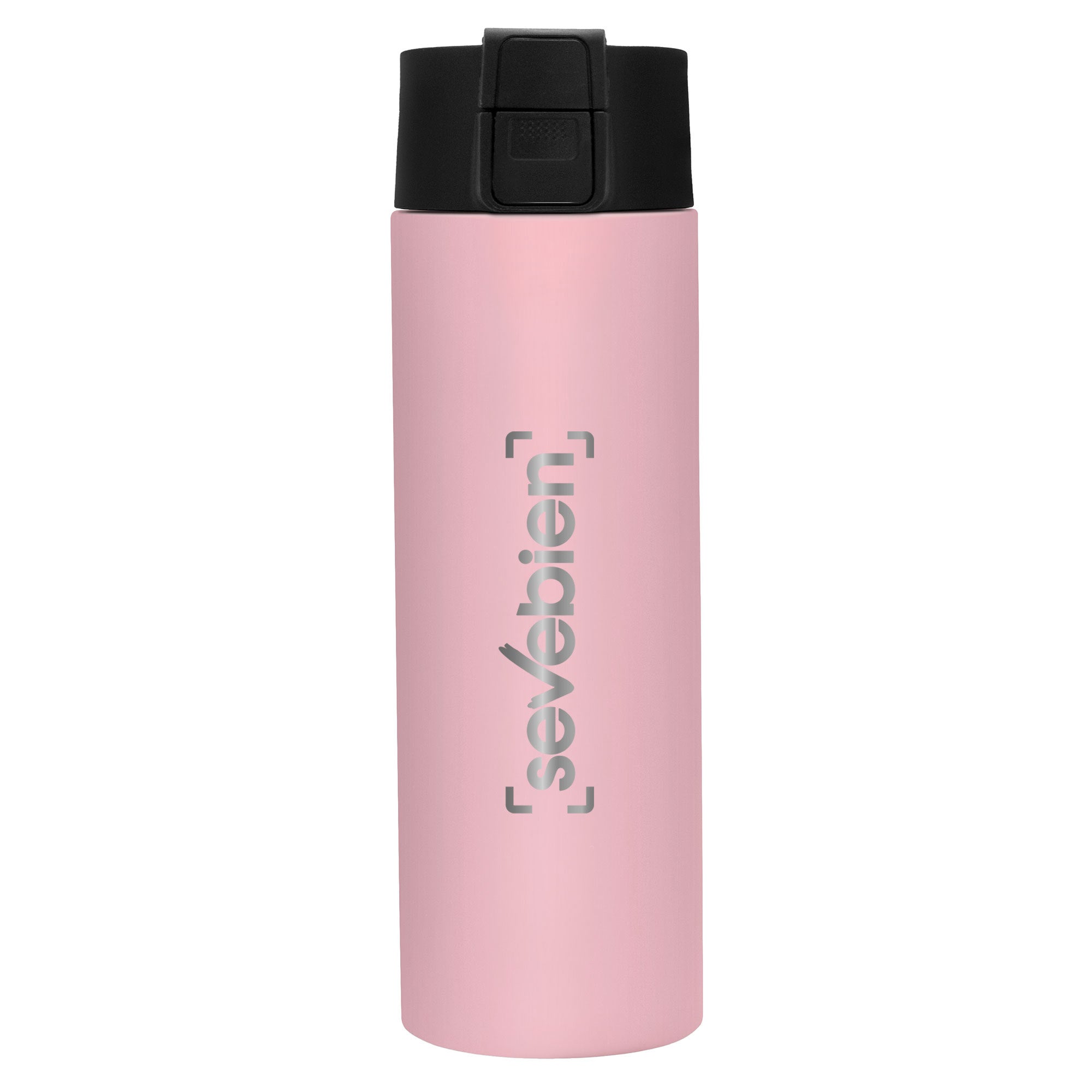 Ø 7 cm x 23 cm. Acero inoxidable. Capacidad 450 ml. Botella con aislamiento térmico vacuum. Interior de acero 304 y exterior de acero 201. Pintura acabado mate. Tapa en PP con traba de seguridad y botón pulsador de apertura. Mantiene por más de 12 hs la temperatura de las bebidas calientes y 24 hs de las bebidas frías. Presentación en caja de regalo kraft.. Medidas Ancho: 32.0 . Medidas Alto: 25.5 . Medidas Profundidad: 47.0