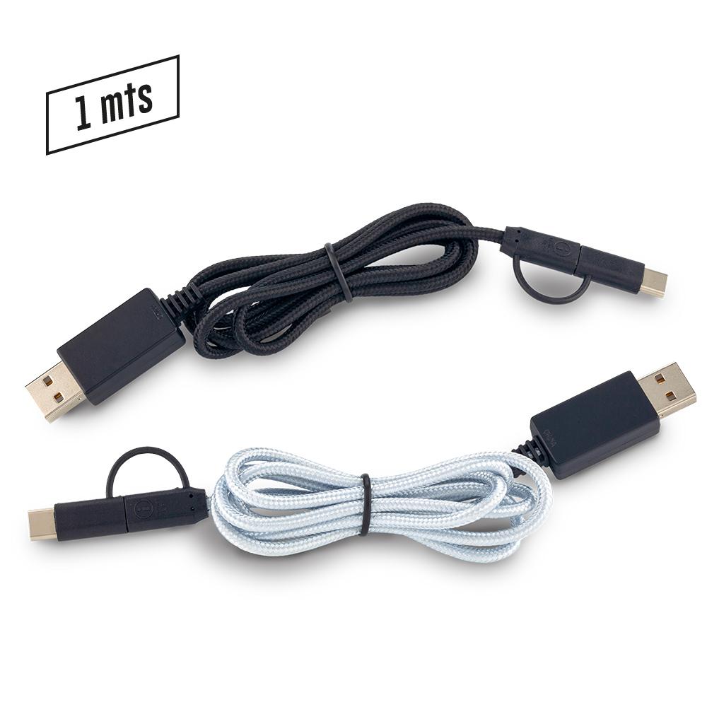 Cable multicargador. Entrada IPhone-Micro 2 en 1 y Tipo C. Base luminosa puede ver el logo al hacerlo en laser.  Medidas: 1 metro Marca: 2 cm Tampografia 1.5 cm Laser. Oferta 12.190