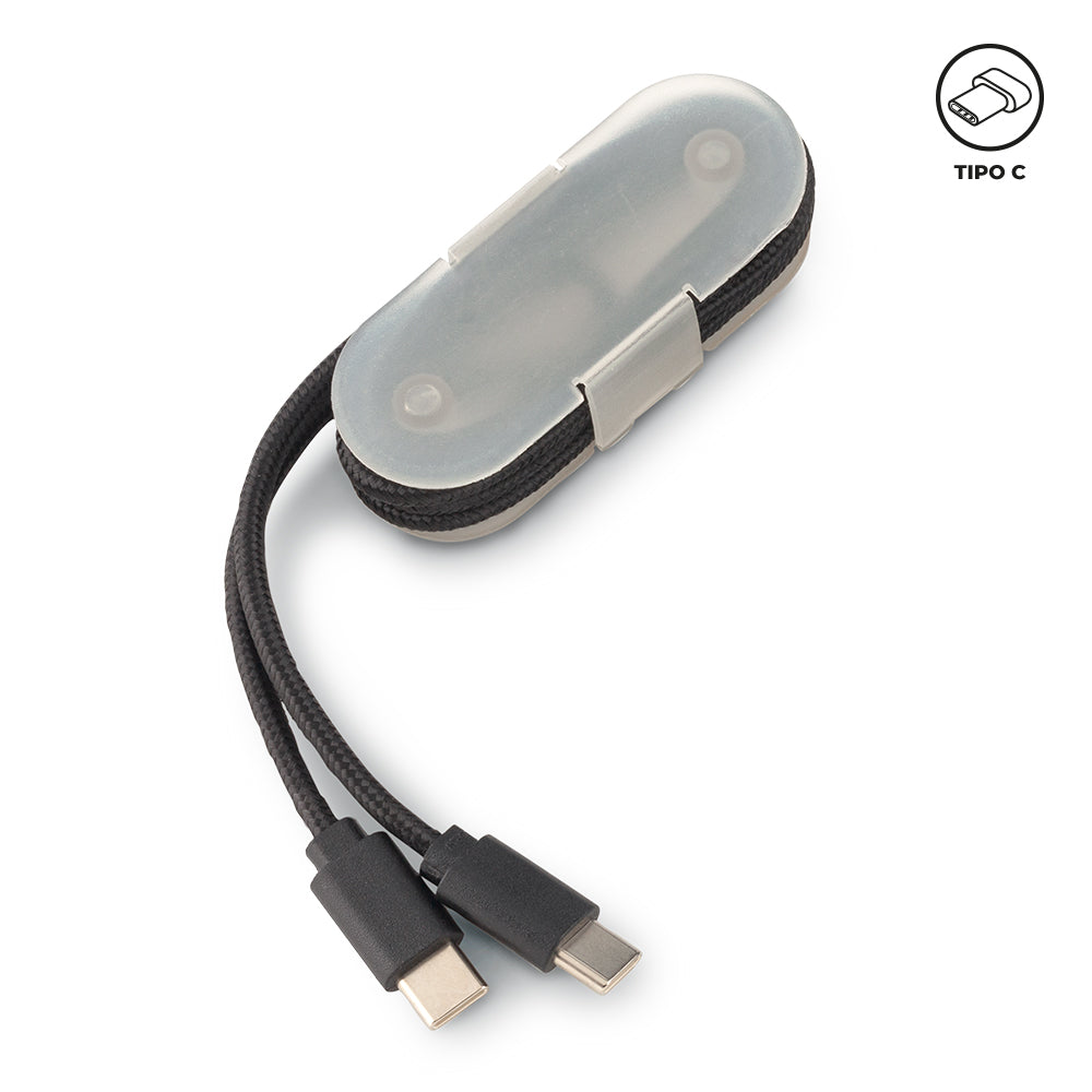 Cable cargador Tipo C de 1 metro. Medidas: 6.5 cm x 2.5 cm x 1.5 cm. Marca: 2 cm Tampografía. Ficha Técnica