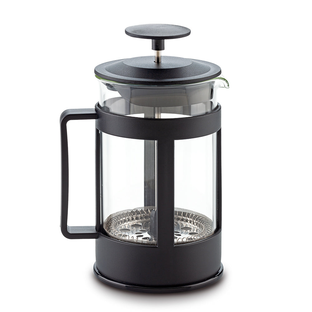 Cafetera Prensa Francesa con filtro de aluminio. Vidrio de Borosilicato. Capacidad 600 ml. Empaque Caja Individual Medidas: 18 cm x 9.8 cm diámetro Marca: 4 cm Tampografía con Tratamiento Ficha Técnica