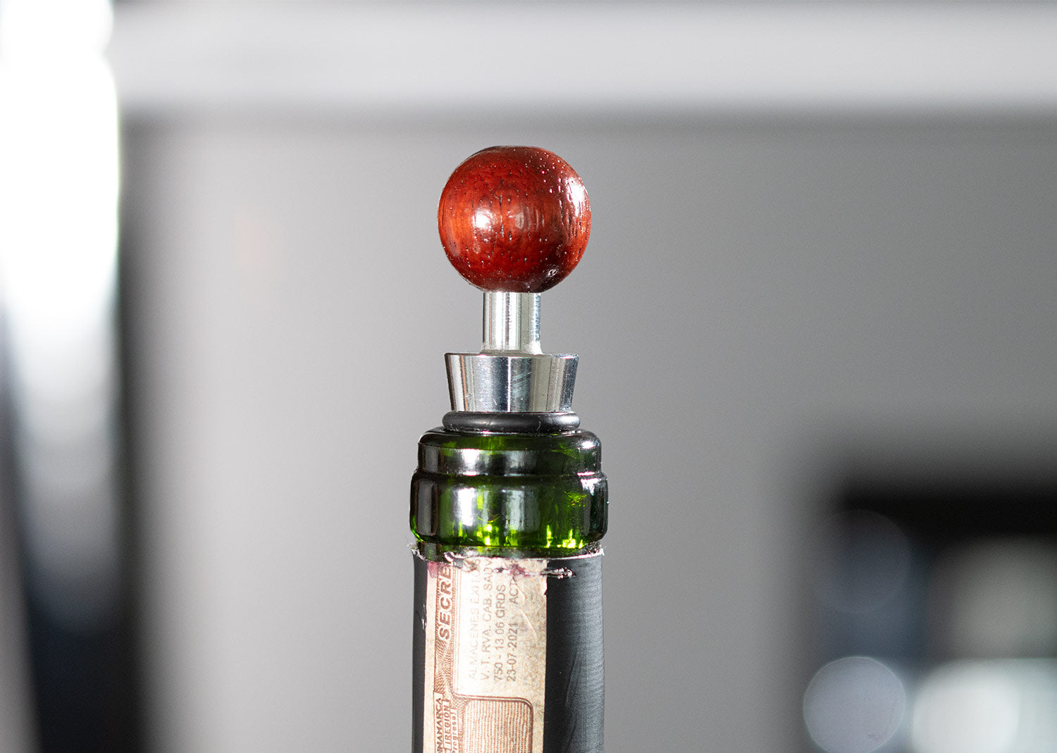 Contiene 4 accesorios con apliques en madera: Tapón para botella, cortagotas, aro antigoteo, sacacorchos de un tiempo. Caja circular de madera con interior beige.. Area impresion: 8 x 8 cm. . Medidas Largo: 4.20