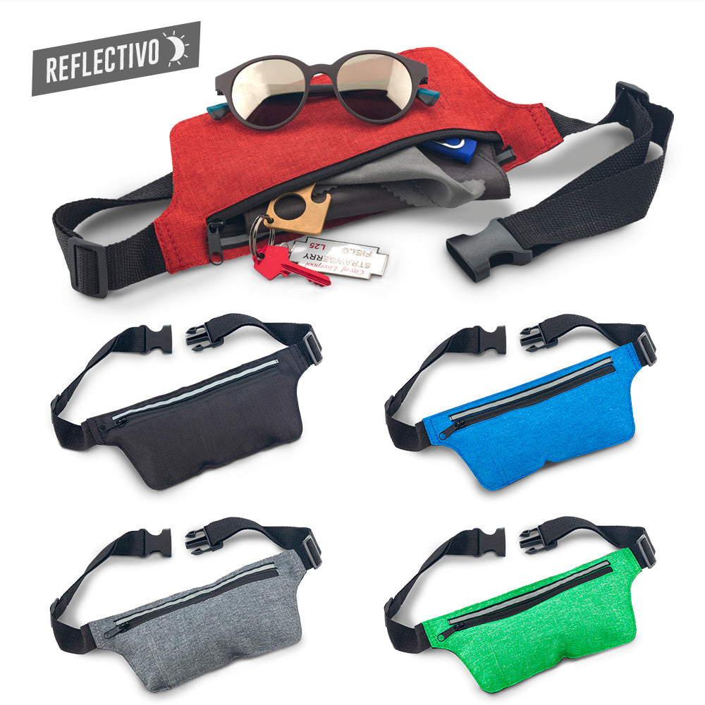 Canguro en poliéster, con banda reflectiva. Medidas: 24.5 cm x 11.5 cm. Marca: 10 cm Screen