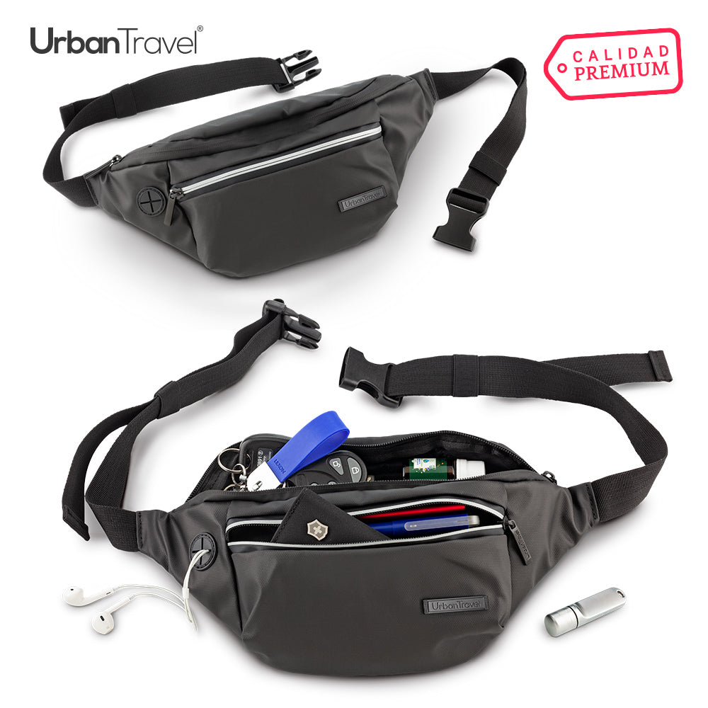 Canguro en poliéster, dos bolsillos y aplique reflectivo. Medidas: 33 cm x 11 cm x 5.5 cm Marca: 8 cm Screen 2.5 cm Láser incluye placa metálica