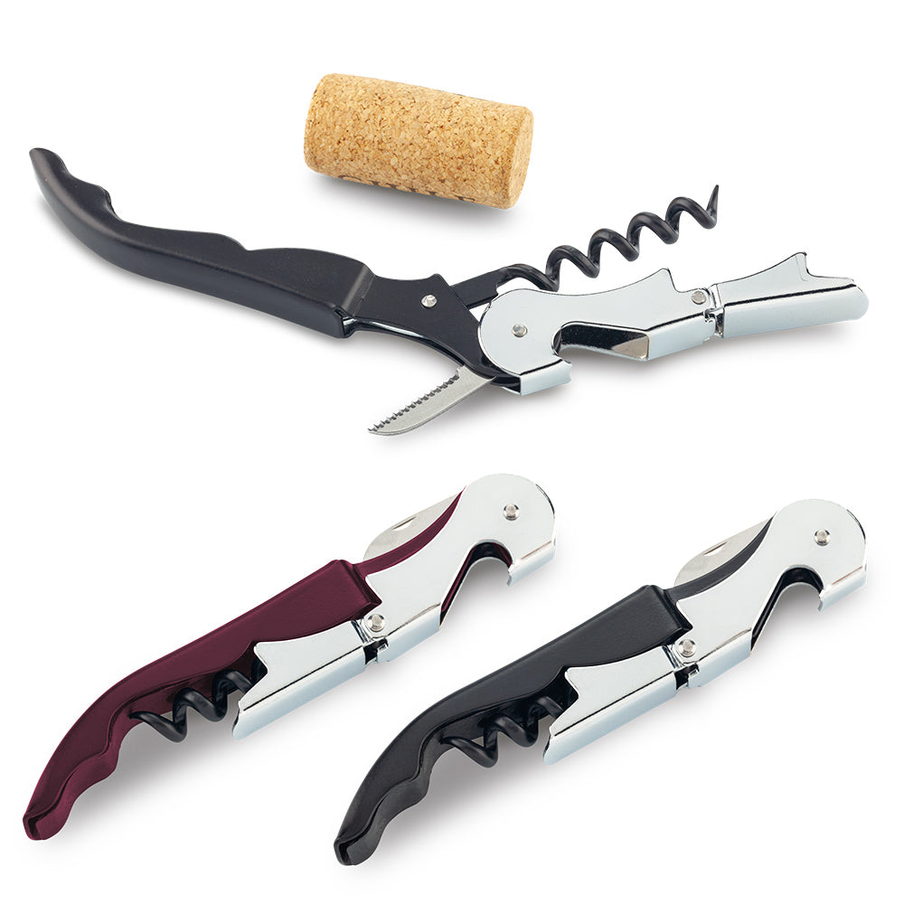Sacacorchos de dos tiempos en acero inoxidable. Empaque caja individual. Medidas:12 cm x 2.1 cm x 1.3 cm Marca: 3 cm Láser Tampografía Ficha Técnica