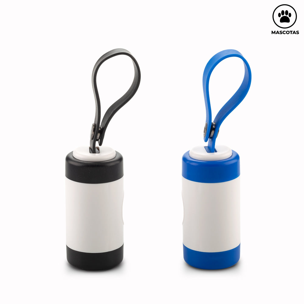 Dispensador de bolsas para mascota. Incluye 10 bolsas y manija en silicona. Medidas: 7 cm x 3.3 cm diámetro. Marca: 2 cm Tampografía con tratamiento.