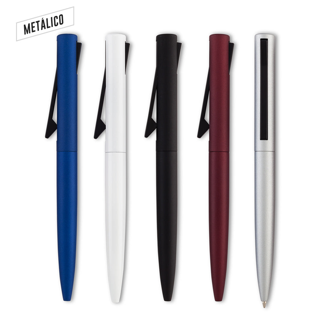 Bolígrafo metálico plástico con obturador en el clip. Barril superior plástico, barril inferior metálico. Medidas: 14 cm Marca: 3.5 cm Láser Venta mínima y en múltiplos de caja de 50 unidades por color.  Ficha Técnica Ver: EST-C-BOX EST-CARTON EST-CLEAR EST-ARISTO EST-AVALON EST-TUB