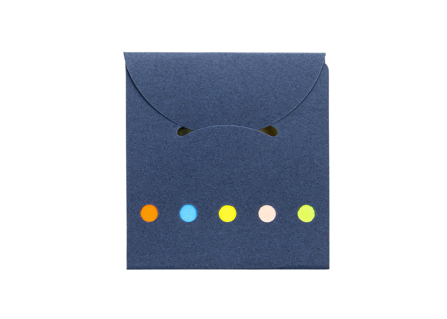 Set de memos con hojas adhesivas, 5 tacos de banderas adhesivas en papel de colores de 25 hojas cu. y cubierta de cartón con troqueles circulares.. Area impresion: Screen: 7 x 7 cm. Tampo: 6 x 2 cm. . Medidas Largo: 0.50 . Medidas Ancho: 8.00 . Medidas Alto: 8.50
