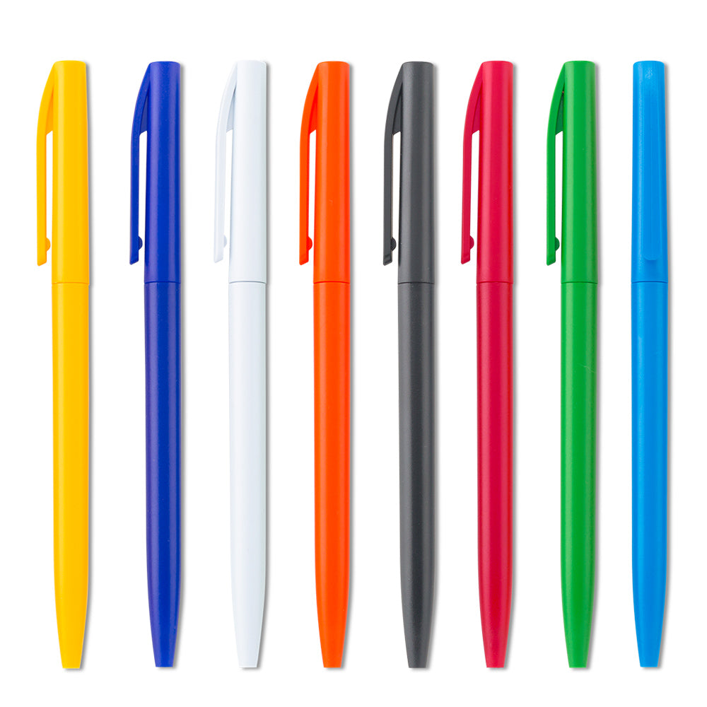 Bolígrafo plástico. Mecanismo twist. Medidas: 13.5 cm Marca: 5 cm Tampografía Venta mínima y en múltiplos de caja de 50 unidades por color.  Ficha Técnica