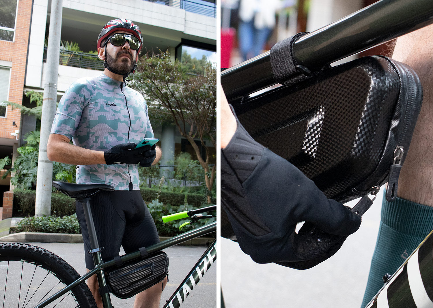 Estuche rigido impermeable para bicicleta con amplio espacio, viene con 3 agarraderas para sujetar al marco, bolsillo principal con cremallera impermeable, 2 bolsillos internos en malla.. Area impresion: Tampo: 6cm . Medidas Largo: 25.00 . Medidas Ancho: 11.00 . Medidas Alto: 12.00