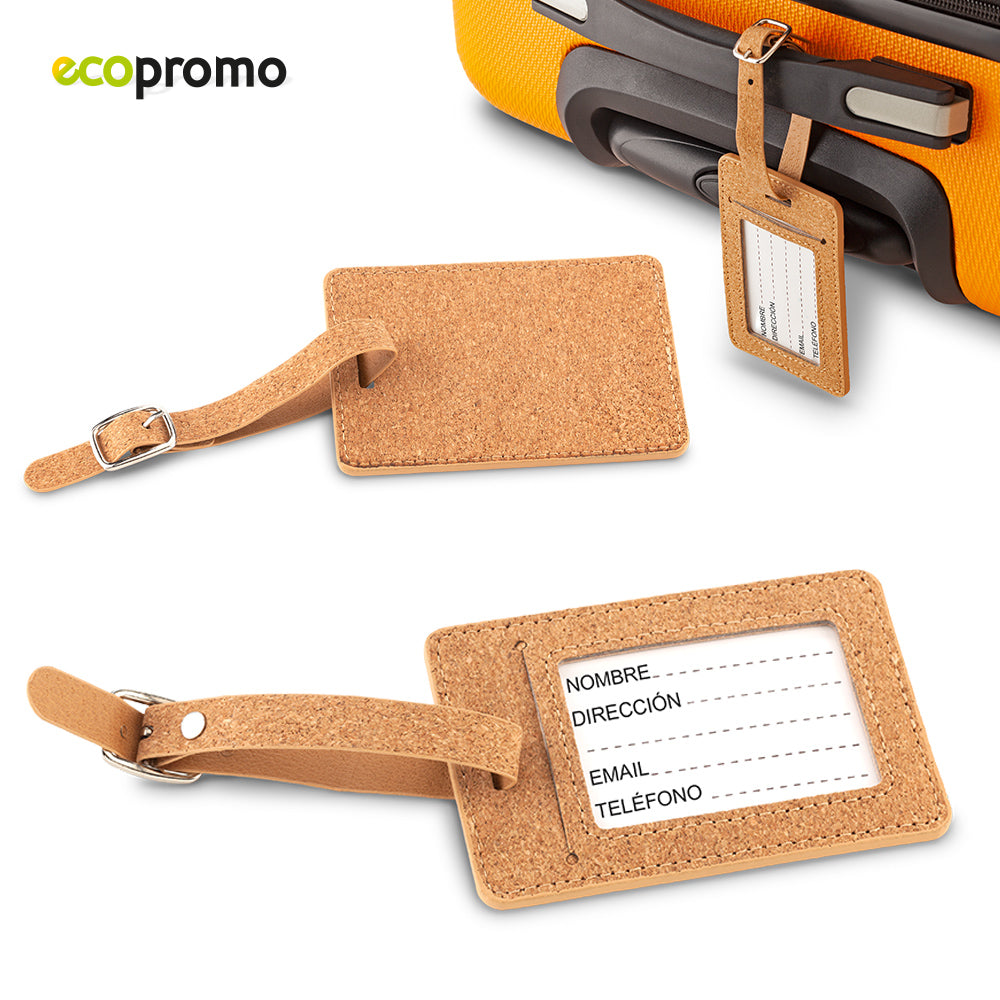 Identificador de maletas en corcho. Medidas: 6.5 cm x 9.5 cm Marca: 4 cm Láser