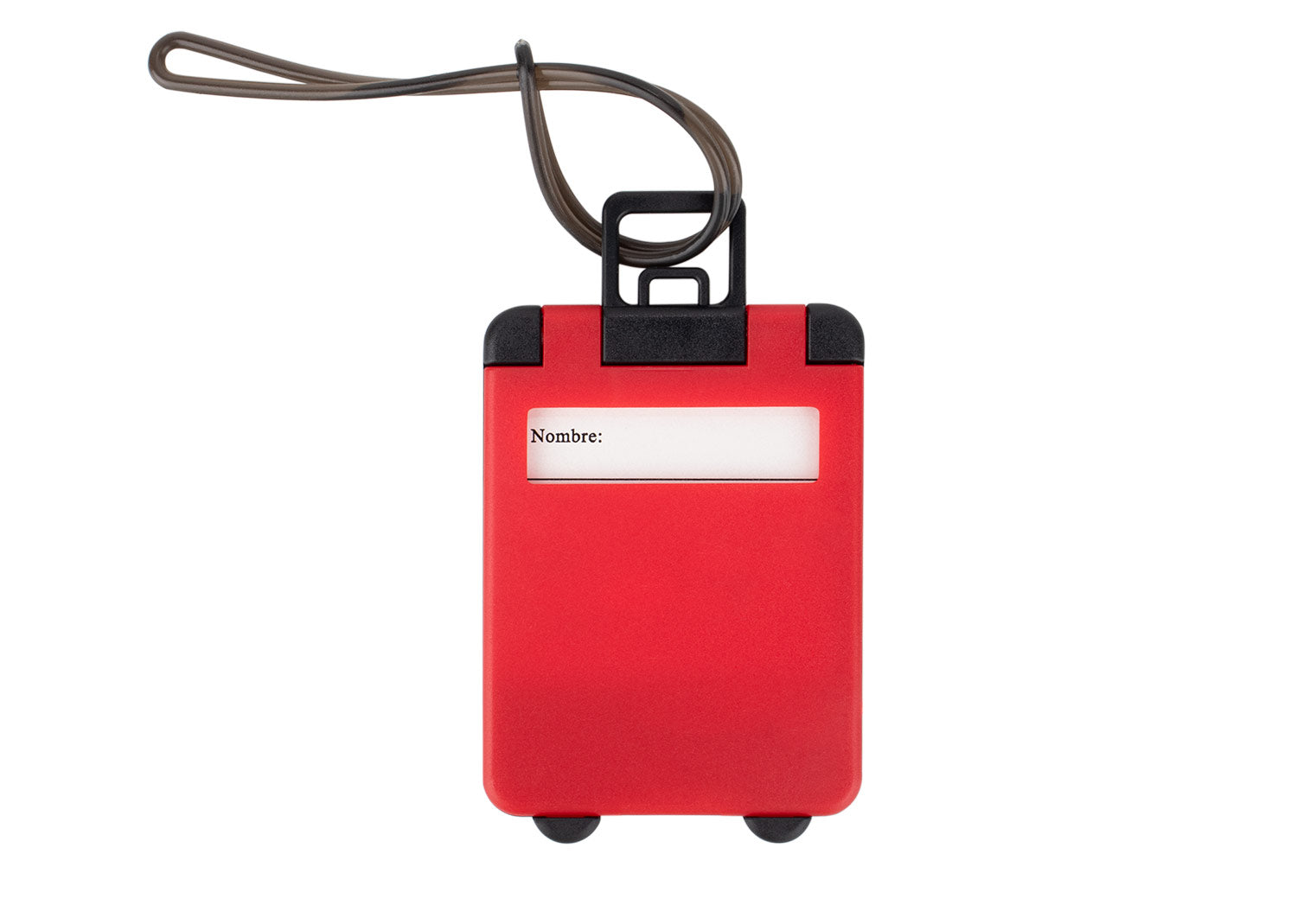 Etiqueta de equipaje en material PP, con correa de PVC resistente para sujetarla fácilmente a maletas o mochilas. En su interior incluye una pegatina para datos personales como nombre, dirección, correo electrónico y teléfono, lo que facilita la identificación del equipaje en caso de pérdida.. Area impresion: Tampo: (4 X 3,5). . Medidas Ancho: 5.5 . Medidas Alto: 9.5