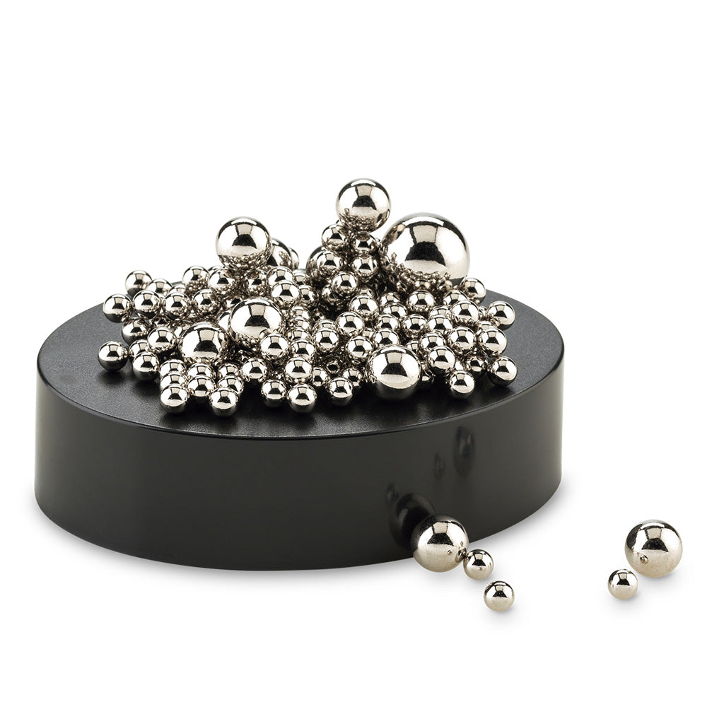 Juego de esferas metálicas, base plástica ovalada magnética. Empaque Caja Individual. Medidas: 9 cm x 7 cm x 2.4 cm Marca: 5 cm Tampografía Ficha Técnica
