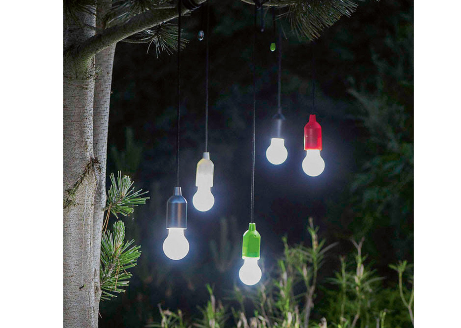 Lámpara de LED en forma de bombilla, con interruptor de encendidoapagado en el cordón, que también sirve para colgar. Requiere de 3 pilas AAA para su funcionamiento. No incluidas. Extensión del cordón: 95 cm.. Area impresion: 4 x 2 cm. . Medidas Largo: 4.50