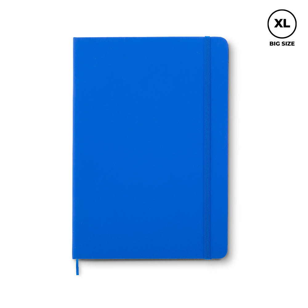 Libreta con cubiertas en poliuretano con cierre elástico. 80 hojas color crema con rayas. Medidas: 18 cm x 25.6 cm.. Marca: 5 cm Tampografía con Empaque y Desempaque. Ficha Técnica