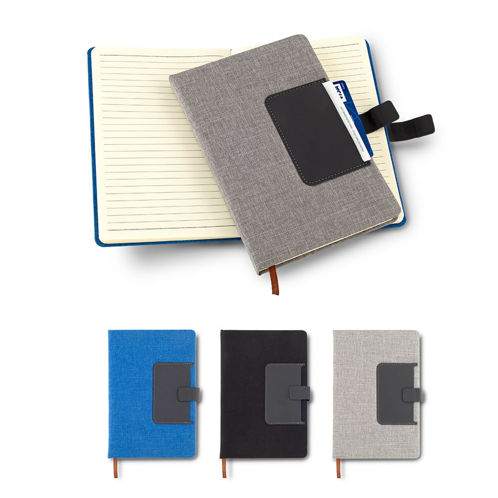 Libreta con cubiertas en poliéster, con tarjetero. 96 hojas de papel color crema. Medidas: 14.5 cm x 21 cm x 1.5 cm Marca: 5 cm Screen Ficha Técnica