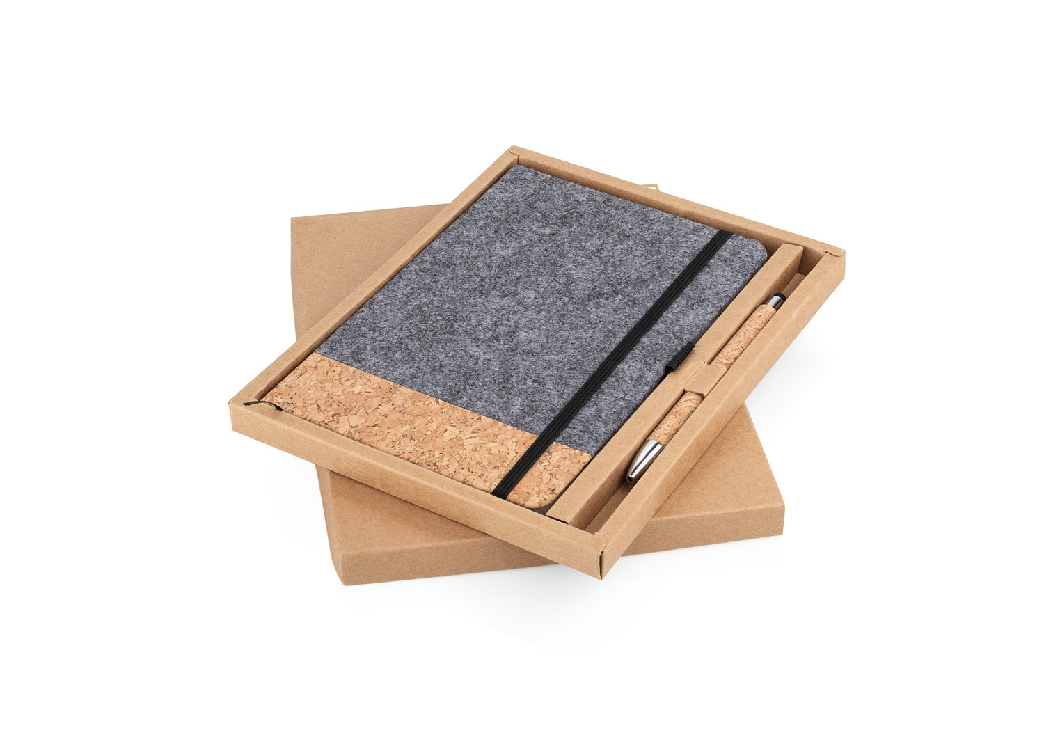 Estuche con libreta de tamaño A5, tapa de corcho, 80 hojas de papel interior de 70 gm² 14 X 21,2 X 1,5, cinta elástica para mantenerla cerrada y bolígrafo stylus con su soporte 14,3 X Ø 0,8 X 1,2. Cada uno en caja kraft. Hecha con materiales reciclados y sostenibles.. Area impresion: Screen Libreta: 10cm X 13cm. Tampo Libreta: 7cm x 2,5cm. Tampo Boligrafo: 7cm x 7 mm. Láser Agenda:2cm X 6cm. Láser Boligrafo:4cm X 0,7cm. . Medidas Largo: 1.9 . Medidas Ancho: 18.8 . Medidas Alto: 24.9