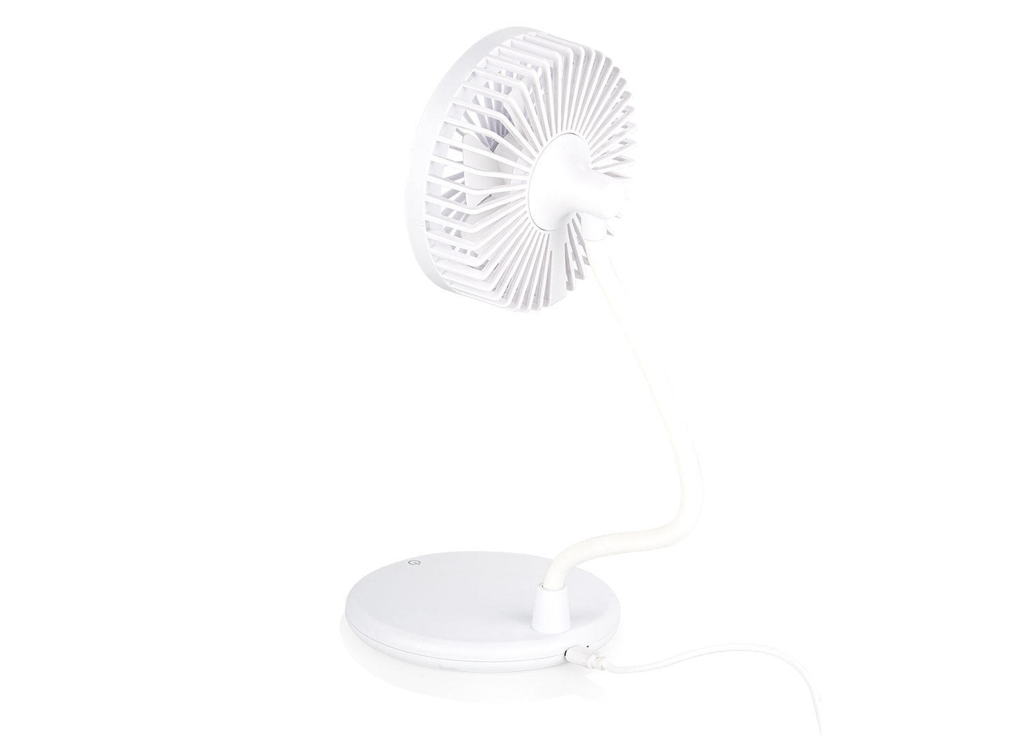 Ventilador de escritorio con linterna dimerizable apta para ajustar el brillo según la necesidad. Cuenta con 3 velocidades de ventilación y un cuello flexible que permite orientar fácilmente tanto el flujo de aire como la luz. Su diseño compacto y silencioso lo hace ideal para espacios de trabajo, estudio o dormitorio. Funciona mediante alimentación USB compatible con computador, adaptador o power bank y viene en presentación de caja blanca.. Area impresion: Tampo: 6,5 cm x 3,5 cm . Medidas Largo: 12 . Medidas Ancho: 12 . Medidas Alto: 32.6