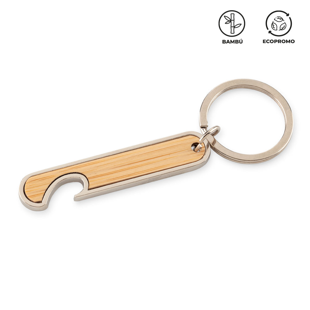 Metálico con bambú y destapador. Empaque caja individual. Medidas: 6 cm x 1.3 cm. Marca: 2 cm Láser. Ficha Técnica