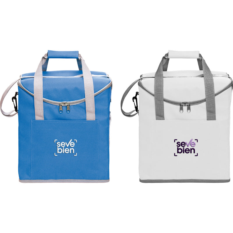 30 x 34 x 19,5 cm. Capacidad 37 litros Indica el volumen, NO el peso.  Poliéster. 600D Lonchera térmica con recubrimiento interior metalizado. Un bolsillo frontal y dos bolsillos laterales de red. Correa tipo bandolera y dos manijas reforzadas con cierre de velcro. Capacidad hasta 6 botellas de 2,5 litros. Medidas Ancho: 36.0 . Medidas Alto: 67.0 . Medidas Profundidad: 40.0