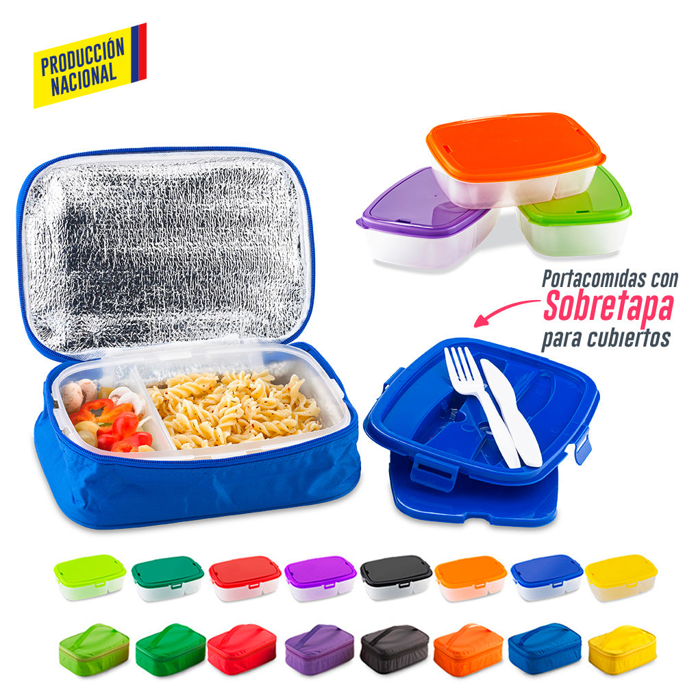 Lonchera en poliéster con portacomida plástico. Con set de cuchillo y tenedor. Cierre de seguridad. Opcional set completo, portacomidas plástico o lonchera cooler en poliéster por separado. Portacomidas plástico apto para microondas No coloque los cubiertos en el microondas. Medidas: 24.5 cm x 17.5 cm Marca: 10 cm Screen Producto con condiciones especiales de alistamiento,consulte con su asesora el tiempo de entrega. . Set Completo . Portacomidas plástico con cubiertos . Lonchera Cooler en poliéster