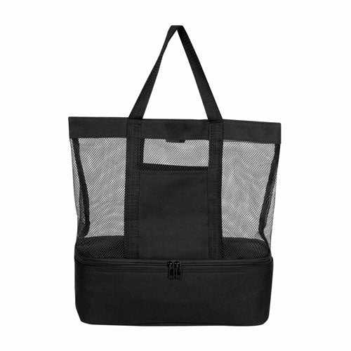 Bolsa principal de red. Compartimento inferior con interior metalizado con cierre. Bolsillo frontal.. Medidas: 34 x 36 x 10 cm . Material: Poliéster